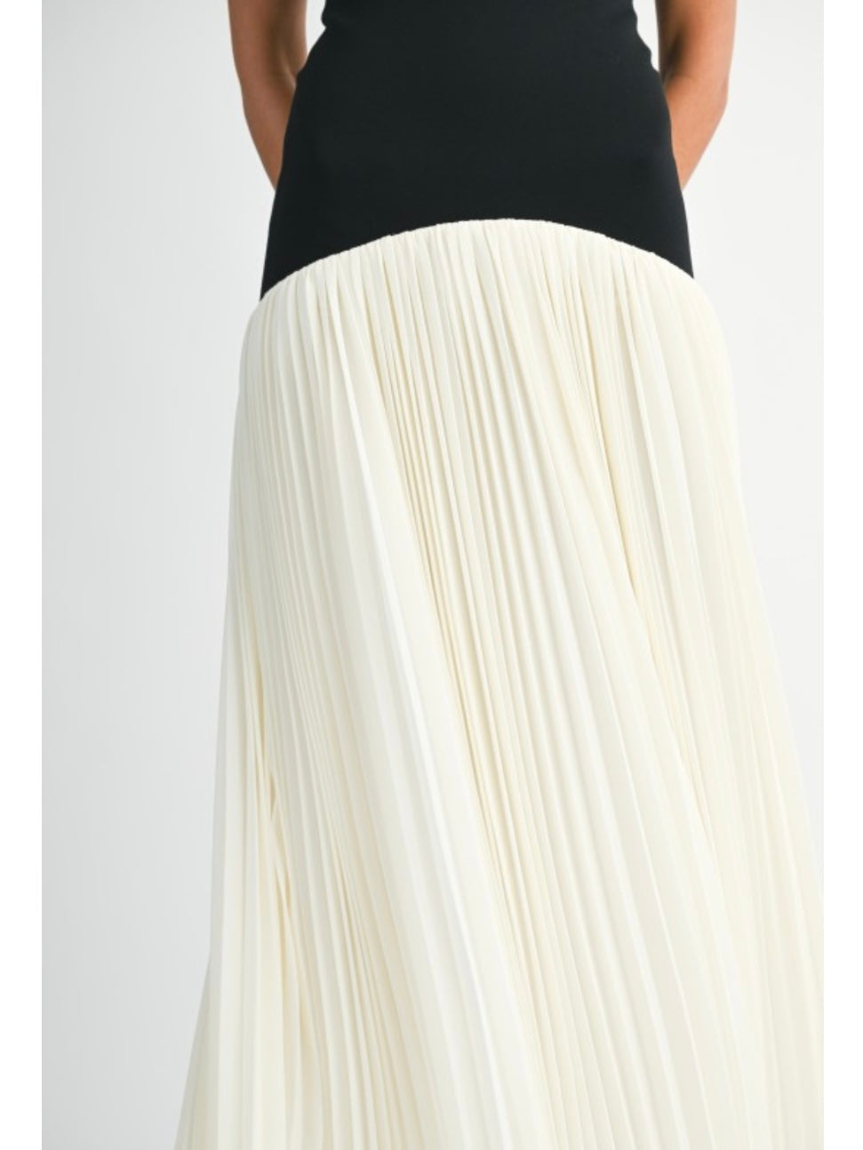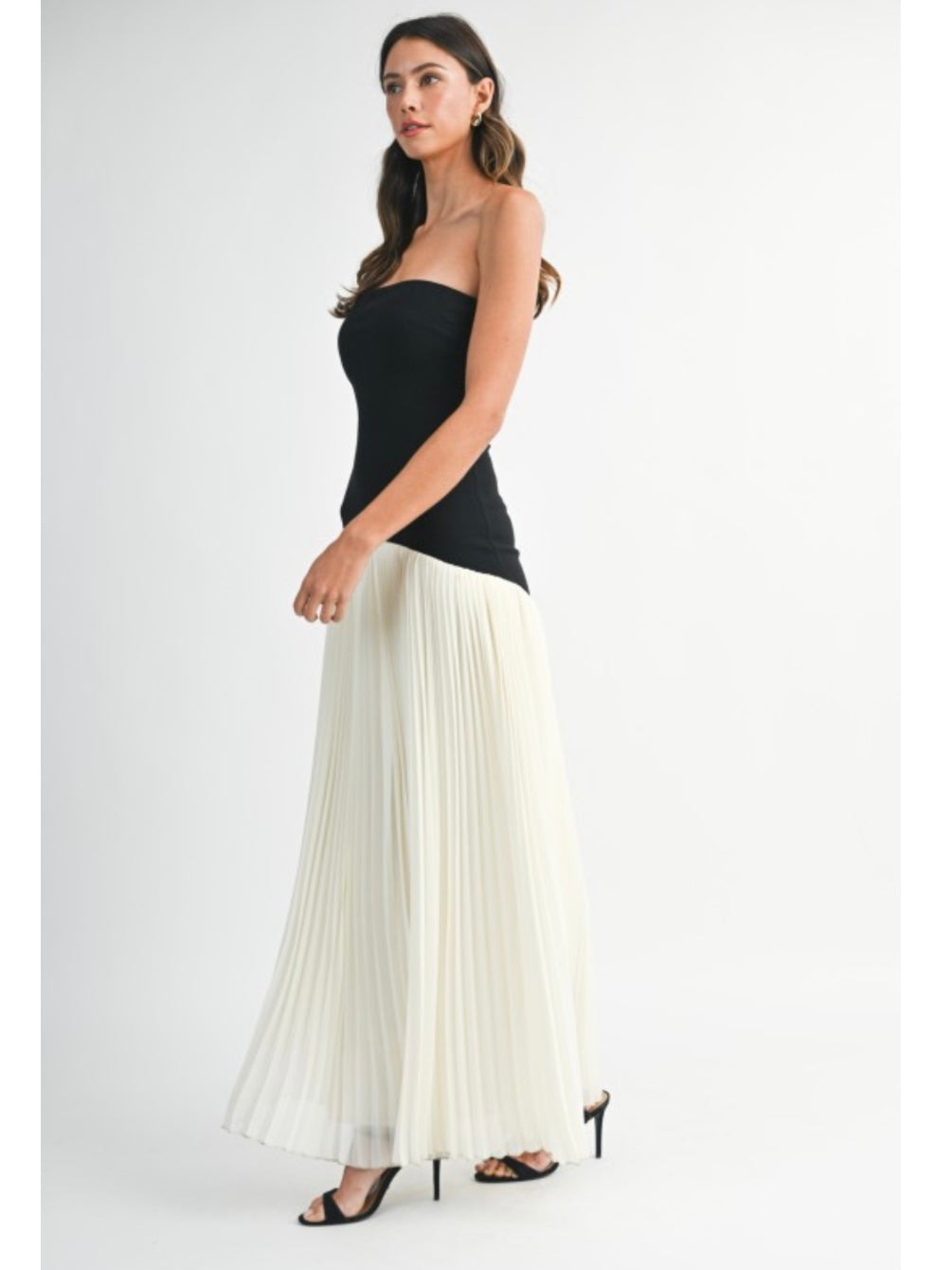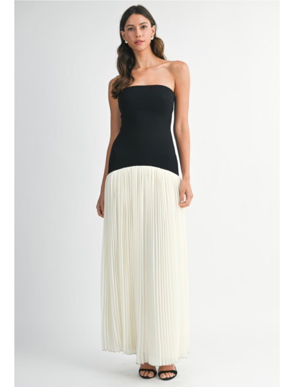 Cream & Black Strapless Drop Waist Maxi dress