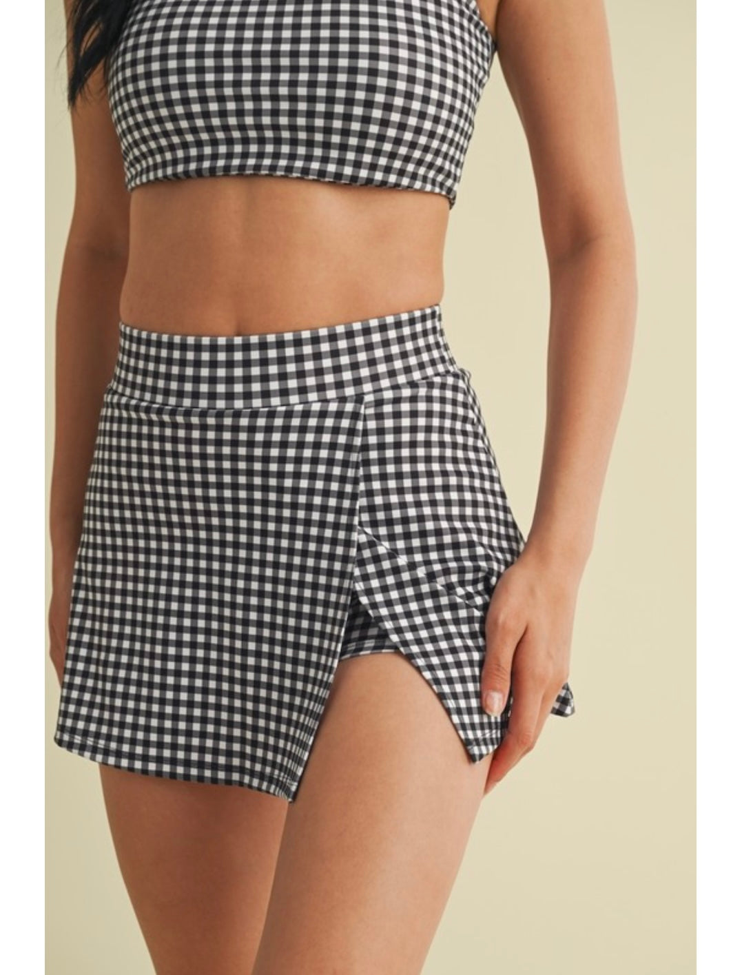 • Load image into Gallery viewer, Black Gingham Side Slit Skort