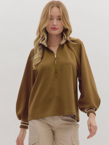 Olive Knit Stripe Hem Half Zip
